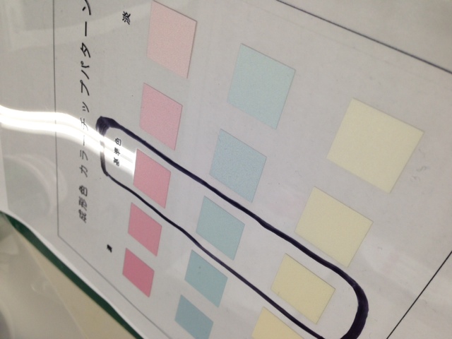 原料屋さんにしっかりと調色して戴きカラープレートも
